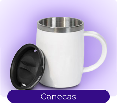 Caneca inox 450ml com tampa rosqueável e parede dupla. Tampa plástica com abertura para bocal e botão acionador para liberação da passagem de líquido.