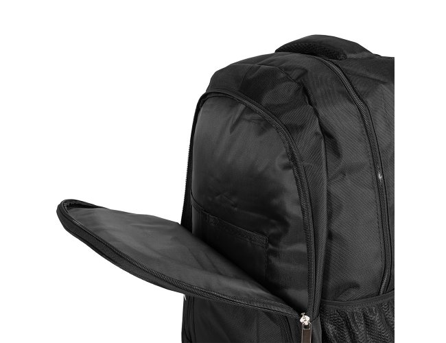 Mochila confeccionada em poliéster 900D impermeável, com fechamento em zíper e capacidade para até 32 litros. Possui compartimento interno com divisória para notebooks de até 17,3 polegadas. Conta ainda com três compartimentos frontais em tamanhos diferentes e dois bolsos laterais em malha com elástico, além de revestimento em tecido respirável na parte posterior, nas alças para as costas e na alça de mão.