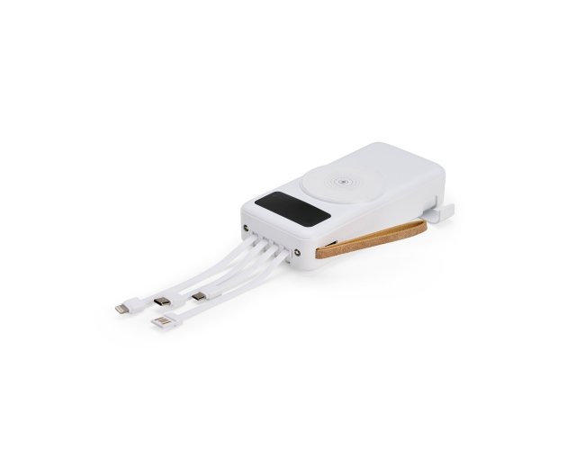 Mantenha a bateria de smartphone e outros dispositivos carregadas com um power bank ágil e eficiente. Feito em plástico e com capacidade de 20.000mAh, ele tem capacidade de sobra para fornecer a recarga necessária para celulares ou tablets nos momentos mais importantes do dia. Possui painel LED com indicador de porcentagem de carga da bateria do aparelho de recarga. Versátil, o power bank é compatível com diversos dispositivos, pois conta com quatro cabos acoplados: USB-C, Micro USB, Lightning e Cabo USB, e também com espaço reservado para carregamento por indução, além de uma saída USB-C, Micro-USB e USB para recarga do carregador. Também apresenta um suporte lateral integrado para manter o celular na horizontal durante o carregamento, facilitando a visualização de vídeos ou participações em reuniões virtuais enquanto o dispositivo carrega, além de uma alça em couro sintético para tornar seu transporte mais prático no dia a dia.